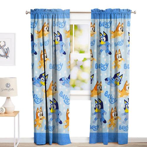 Juego De 2 Cortinas Infantil 150x210 Diseño Bluey Bingo