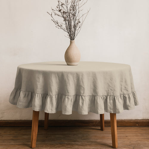 Mantel con Volado Redondo Coquette Elegante Tela Panama