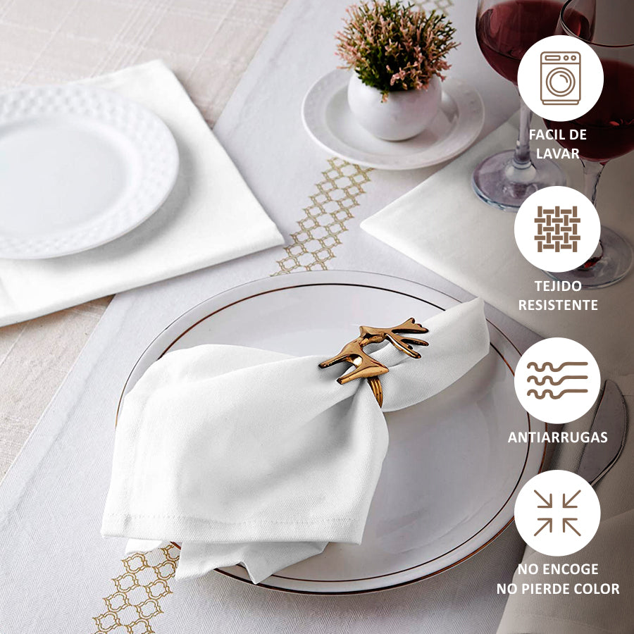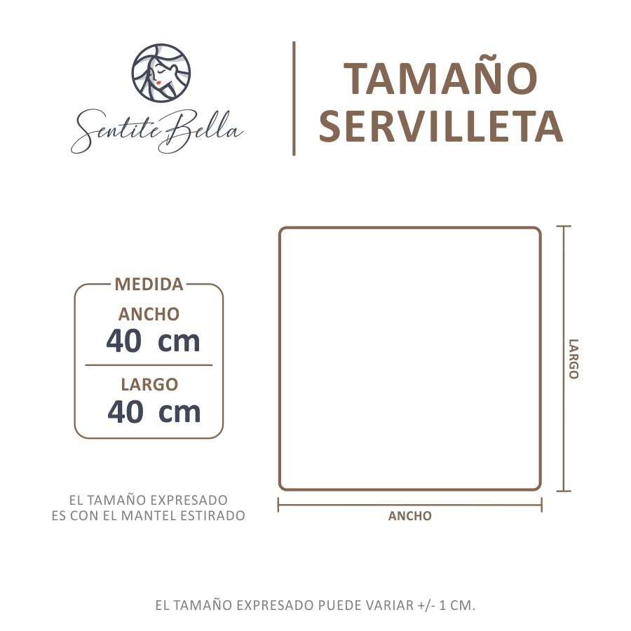 • Cantidad: 6 Servilletas de Tela Panama • Medida: 40 cm x 40 cm • Terminación: Dobladillo • Material: Panama • 100% Poliéster de alta calidad. • Costuras resistentes. • Los colores no destiñen y mantienen su intensidad a lo largo del tiempo.